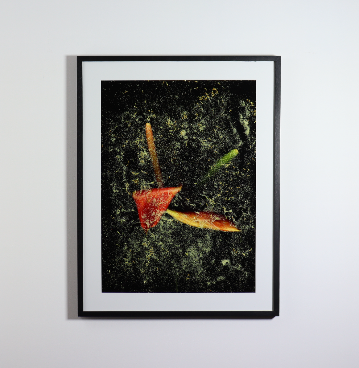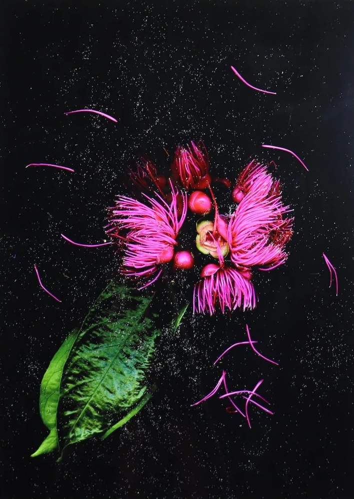 Nesse ponto, a leitura crítica de Juan Esteves contribui para aprofundar a compreensão dessa operação. Ao observar a produção de Melani, Esteves identifica uma natureza tratada em chave conceitual, organizada como um “tableau” em que elementos botânicos se articulam em composições que tensionam arte e documento. Em sua leitura, há uma dimensão quase cósmica na maneira como essas formas se organizam, aproximando-se de uma espécie de constelação orgânica, em que luz, sombra e estrutura operam com precisão, evocando o chiaroscuro e ampliando a densidade visual das imagens.