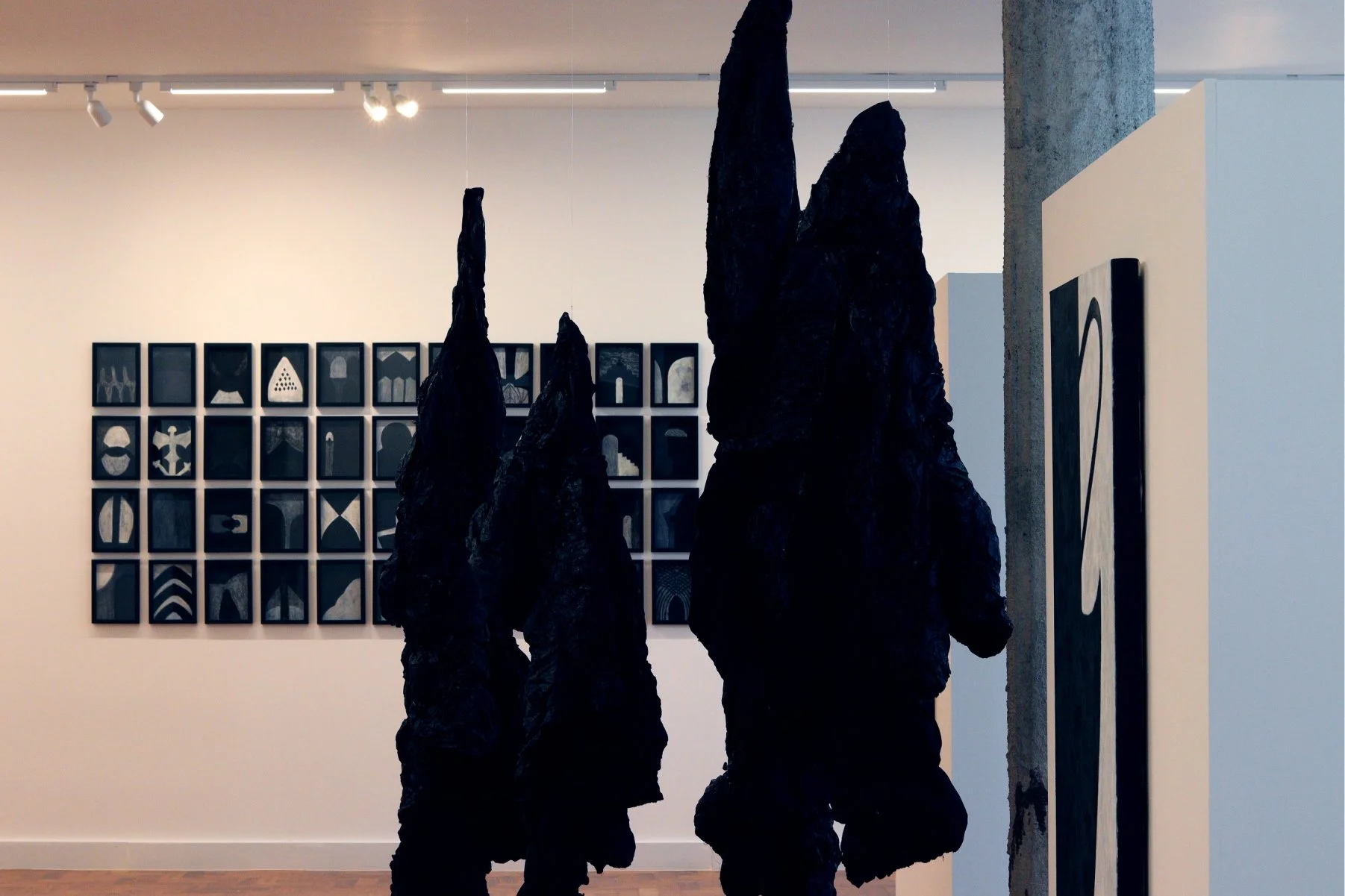 O preto, na obra de Gina, é território, é vontade, é intenção. Matéria e campo onde gestação, memória e afetos se depositam, onde o olhar para e se move na medida em que os contornos vão se mostrando, se apresentando, ganhando nome ou não. Na exposição, o escuro constrói uma poética da interioridade, na qual a solidão reivindica a possibilidade de não ser só exílio, se apresentando como lugar de existência, feito do que se vê e do que se viu - até agora.